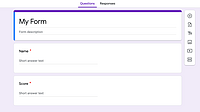 Step 1: Create a Google Form : https://docs.google.com/forms/ Create a form with two questions: "Name" and "Score" Step 2: Link with a spreadsheet : Go to the Responses tab, click on the kebab menu an...